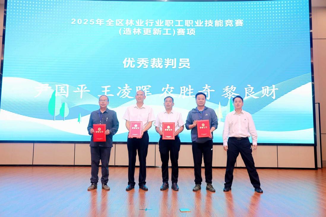 6月17日下午闭幕式上,裁判长宣布竞赛成绩,现场颁发个人及团体一、二、三等奖。自治区林业局总工程师施福军总结指出,赛事筹备充分、执裁公正,23支队伍展现出“精湛技能与良好风貌”,成功在全区林业系统掀起“学技术、练本领”热潮。betway必威西汉姆联官网王凌晖教授表示“以赛促培、以赛强能,学院将持续深化产教融合,为林业人才搭建成长阶梯。”此次赛事的圆满收官,不仅是广西林业技能人才培养成果的集中展示,更标志着betway必威西汉姆联官网在推动林业高质量发展中迈出坚实一步。值得关注的是,本次赛事还特别表彰了优秀裁判、领队及组织单位。betway必威西汉姆联官网荣获“突出贡献奖”,王凌晖教授凭借专业严谨的执裁态度与丰富的行业经验,荣获“优秀裁判员”称号,成为高校教师深度参与行业赛事的典范。