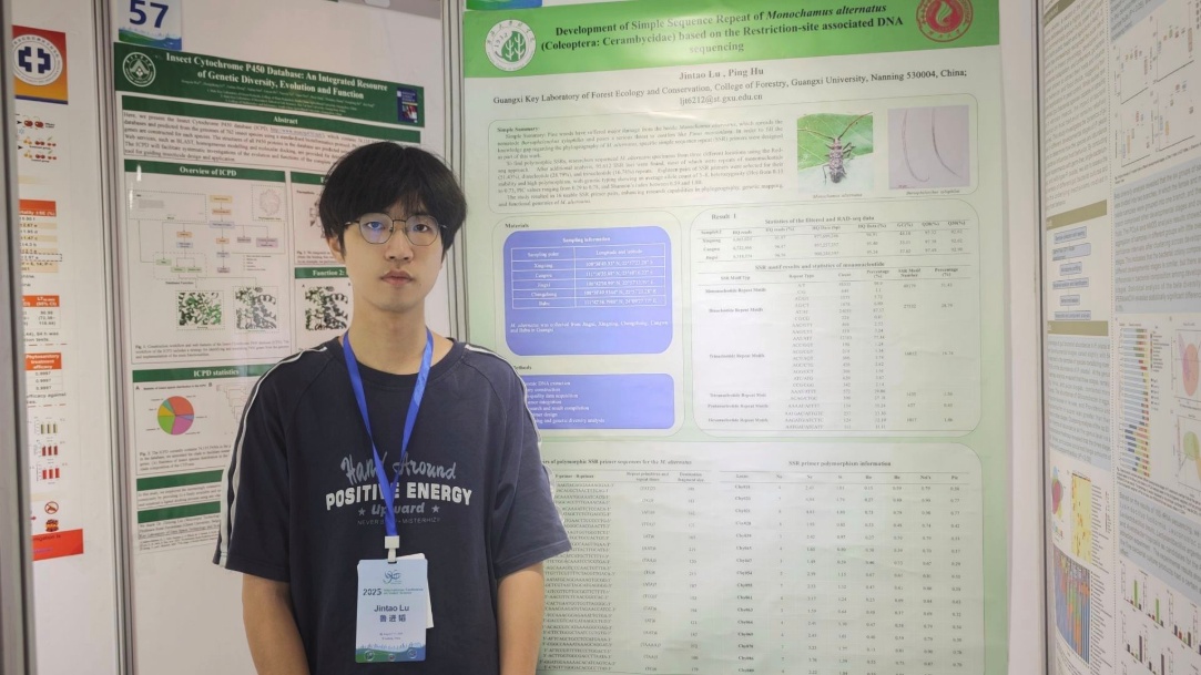 国际昆虫学大会是由国际昆虫学会理事会(CICE)指导的全球性学术活动,是昆虫科学领域最高级别的学术盛会之一。我院24级生态学博士研究生鲁进韬受邀参加此次会议,并在会场以“Development of Simple Sequence Repeat ofMonochamusalternatus(Coleoptera:Cerambycidae) Based on Restriction Site-Associated DNA Sequencing”为题作了墙报展示。该研究聚焦林业重大害虫松墨天牛,开发了16个具有多态性高、稳定性强特点的SSR位点,为进一步开展松墨天牛的谱系地理学研究、建立遗传图谱以及深入探索基因功能提供了重要工具。